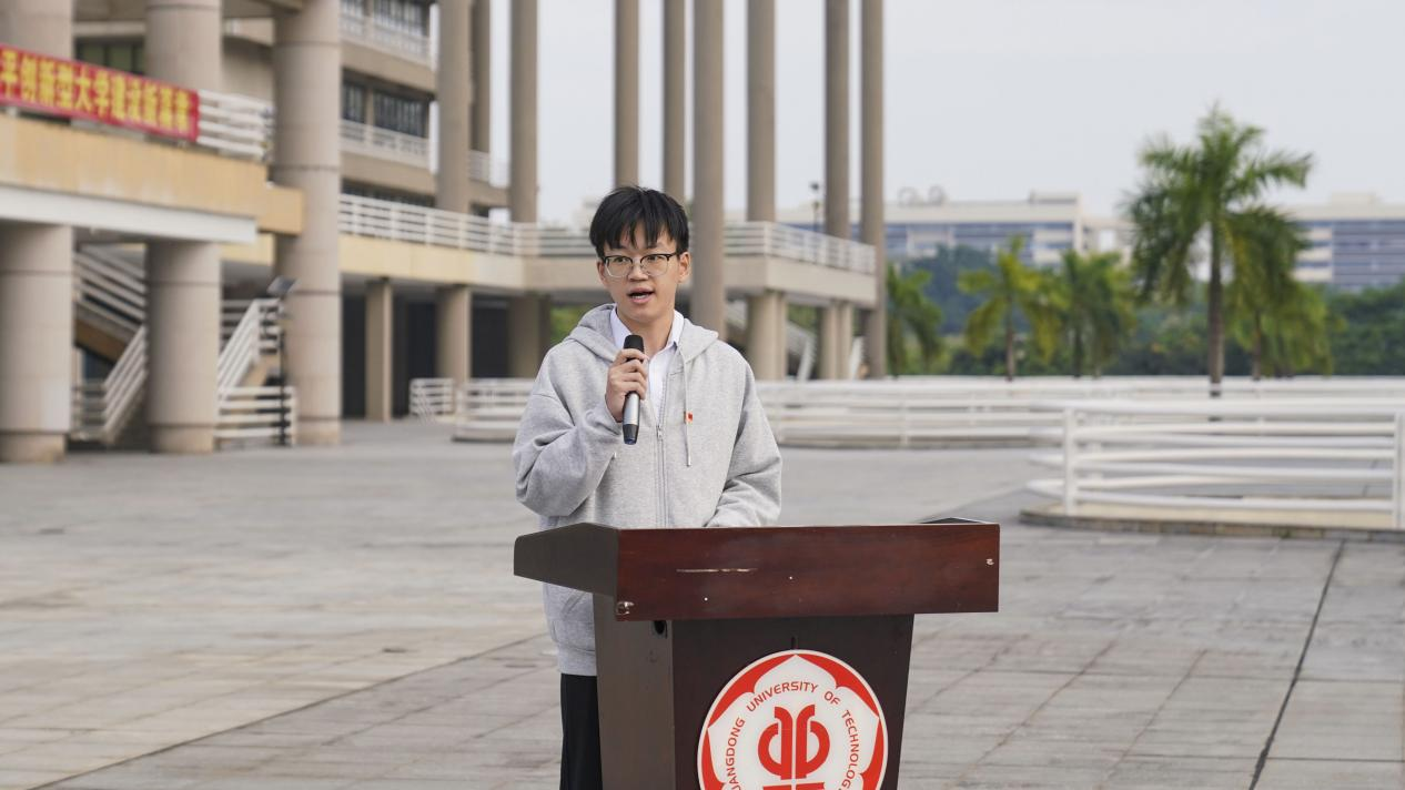 2025级新生代表吴宇霖在发言中表示,深刻体悟广工校训精神与学院工匠精神,重新认识测绘专业的价值,他表示将学会自我管理、脚踏实地,把个人理想融入民族复兴的伟大征程,以实际行动诠释青年担当。两位同学的发言真挚恳切,引起现场师生的广泛共鸣。