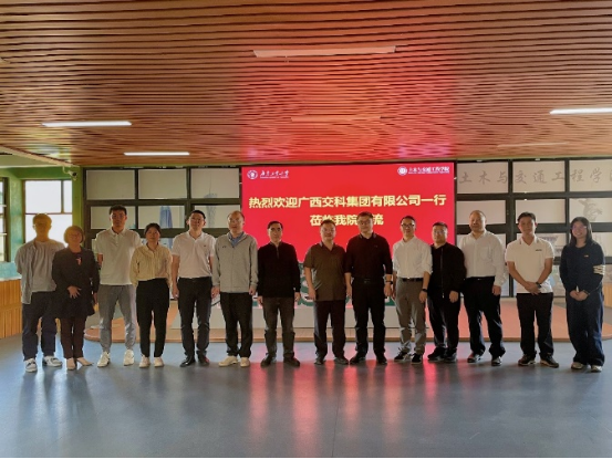 与广西交科集团有限公司于11月6日在实验二号楼502室成功召开科研合作暨人才培养交流会议。会议由院长赵志伟主持,广西交科集团有限公司副总经理熊剑平、科技研究院院长张仰鹏、学院副院长杜星、土木工程系主任梁仕华及企业和学院教师代表参会。